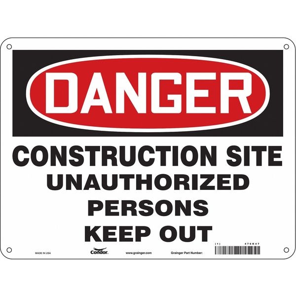 Safety Sign, Horizontal Rectangle, Number of Printed Sides 1, English, Sign Format Traditional OSHA, Sign Legend Construction Site Unauthorized Persons Keep Out, Sign Legend Background Color White, Sign Legend Style Text