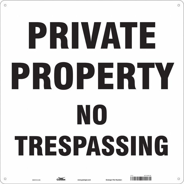 Safety Sign, Square, Number of Printed Sides 1, English, Sign Format Other Format, Sign Legend Private Property No Trespassing, Sign Legend Background Color White, Sign Legend Style Text