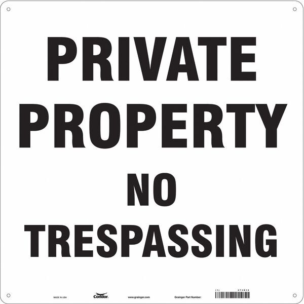 Safety Sign, Square, Number of Printed Sides 1, English, Sign Format Other Format, Sign Legend Private Property No Trespassing, Sign Legend Background Color White, Sign Legend Style Text