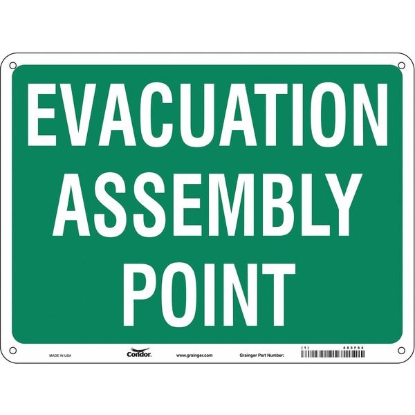 Safety Sign, Horizontal Rectangle, Number of Printed Sides 1, English, Sign Legend Evacuation Assembly Point, Sign Legend Background Color Green, Sign Legend Style Text