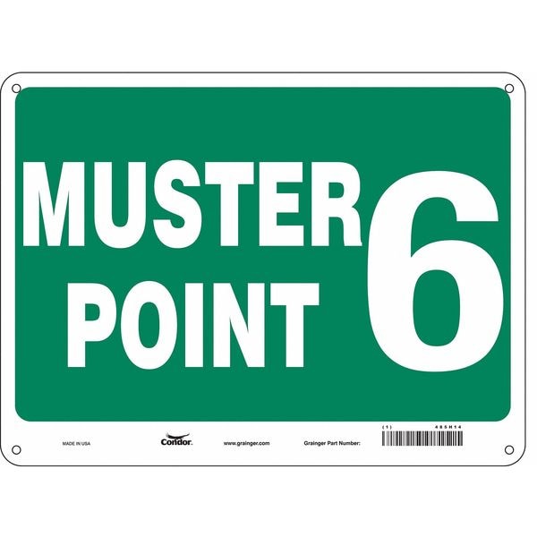Safety Sign, Horizontal Rectangle, Number of Printed Sides 1, English, Sign Format Other Format, Sign Legend Muster Point 6, Sign Legend Background Color Green, Sign Legend Style Text