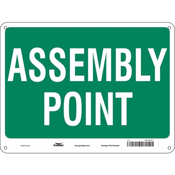 Safety Sign, Horizontal Rectangle, Number of Printed Sides 1, English, Sign Format Other Format, Sign Legend Assembly Point, Sign Legend Background Color Green, Sign Legend Style Text