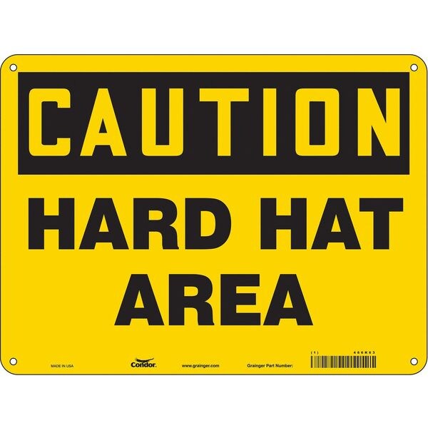 Safety Sign, Horizontal Rectangle, Number of Printed Sides 1, English, Sign Format Traditional OSHA, Sign Legend Hard Hat Area, Sign Legend Background Color Yellow, Sign Legend Style Text