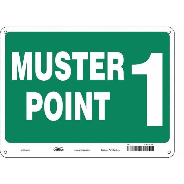 Safety Sign, Horizontal Rectangle, Number of Printed Sides 1, English, Sign Legend Muster Point 1, Sign Legend Background Color Green, Sign Legend Style Text