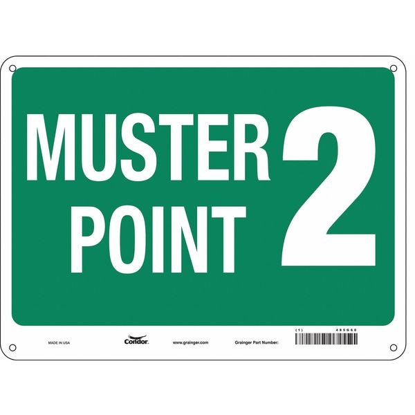 Safety Sign, Horizontal Rectangle, Number of Printed Sides 1, English, Sign Format Other Format, Sign Legend Muster Point 2, Sign Legend Background Color Green, Sign Legend Style Text