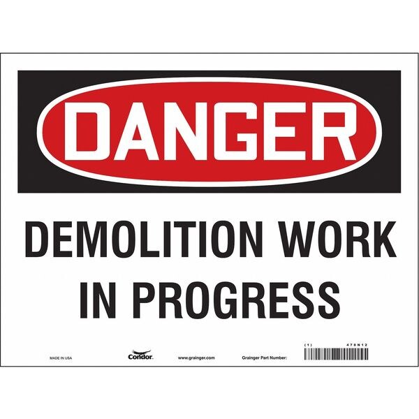 Safety Sign, Horizontal Rectangle, Number of Printed Sides 1, English, Sign Format Traditional OSHA, Sign Legend Demolition Work In Progress, Sign Legend Background Color White, Sign Legend Style Text