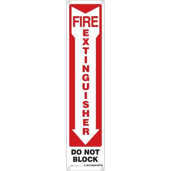Safety Sign, Horizontal Rectangle, Number of Printed Sides 1, English, Sign Legend Fire Extinguisher Do Not Block, Sign Legend Background Color Red, White, Sign Legend Style Symbol and Text