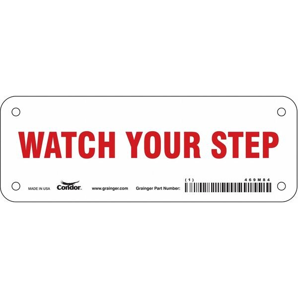 Safety Sign, Horizontal Rectangle, Number of Printed Sides 1, English, Sign Format Other Format, Sign Legend Watch Your Step, Sign Legend Background Color White, Sign Legend Style Text