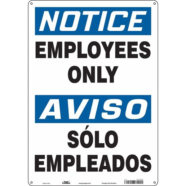 Safety Sign, Vertical Rectangle, Number of Printed Sides 1, English, Spanish, Sign Format Traditional OSHA, Sign Legend Employees Only/Solo Empleados, Sign Legend Background Color White, Sign Legend Style Text