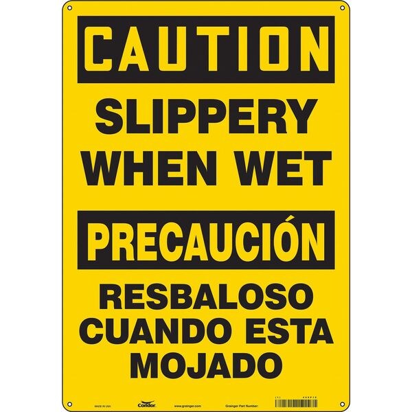 Safety Sign, Vertical Rectangle, Number of Printed Sides 1, English, Spanish, Sign Format Traditional OSHA, Sign Legend Slippery When Wet/Resbaloso Cuando Esta Mojado, Sign Legend Background Color Yellow, Sign Legend Style Text