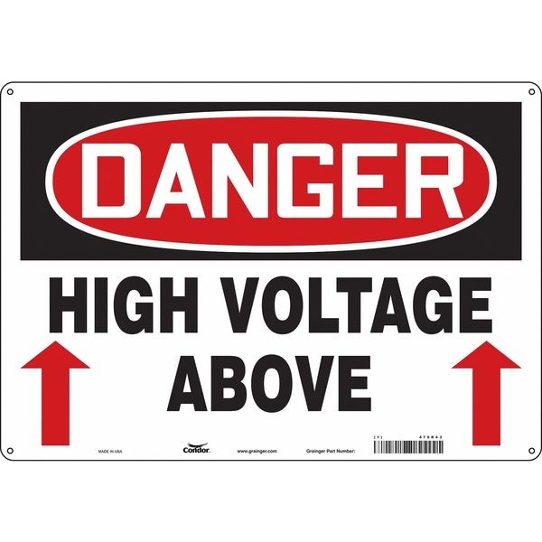 Safety Sign, Horizontal Rectangle, Number of Printed Sides 1, English, Sign Format Traditional OSHA, Sign Legend High Voltage Above, Sign Legend Background Color White, Sign Legend Style Symbol and Text
