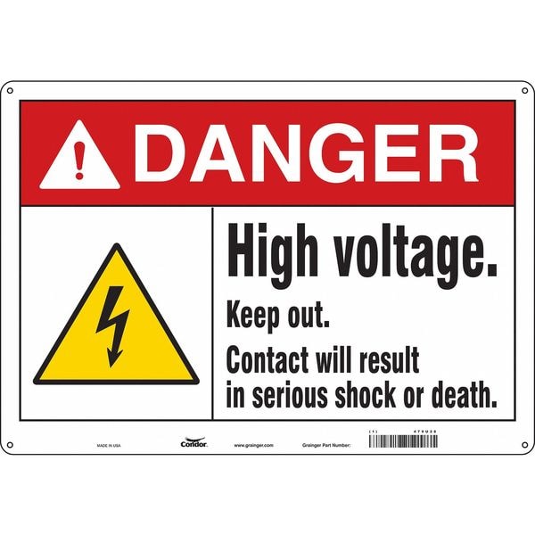 Safety Sign, Horizontal Rectangle, Number of Printed Sides 1, English, Sign Format ANSI/OSHA Format, Sign Legend High Voltage. Keep Out. Will Result In Serious Shock Or Death., Sign Legend Background Color White, Sign Legend Style Symbol and Text