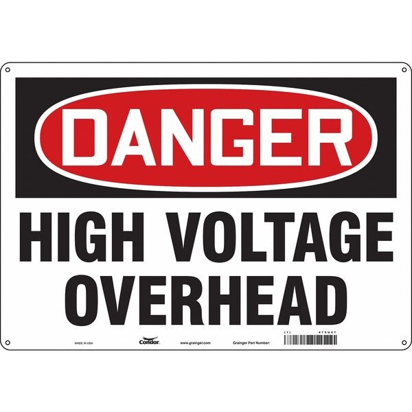 Safety Sign, Horizontal Rectangle, Number of Printed Sides 1, English, Sign Format Traditional OSHA, Sign Legend High Voltage Overhead, Sign Legend Background Color White, Sign Legend Style Text