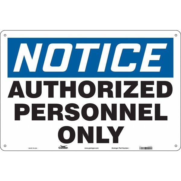 Safety Sign, Horizontal Rectangle, Number of Printed Sides 1, English, Sign Format Traditional OSHA, Sign Legend Authorized Personnel Only, Sign Legend Background Color White, Sign Legend Style Text