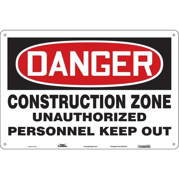 Safety Sign, Horizontal Rectangle, Number of Printed Sides 1, English, Sign Format Traditional OSHA, Sign Legend Construction Zone Unauthorized Personnel Keep Out, Sign Legend Background Color White, Sign Legend Style Text