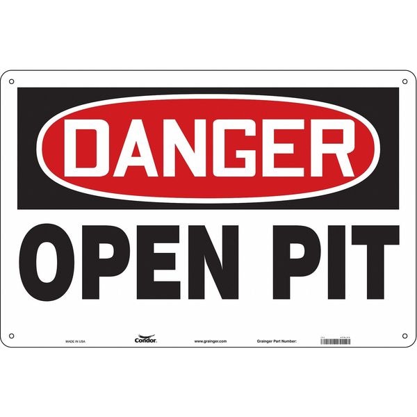Safety Sign, Horizontal Rectangle, Number of Printed Sides 1, English, Sign Format Traditional OSHA, Sign Legend Open Pit, Sign Legend Background Color White, Sign Legend Style Text