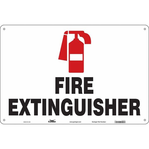 Safety Sign, Horizontal Rectangle, Number of Printed Sides 1, English, Sign Format Other Format, Sign Legend Fire Extinguisher, Sign Legend Background Color White, Sign Legend Style Symbol and Text