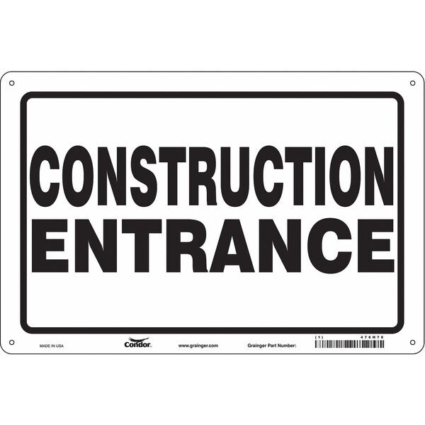 Safety Sign, Horizontal Rectangle, Number of Printed Sides 1, English, Sign Format Other Format, Sign Legend Construction Entrance, Sign Legend Background Color White, Sign Legend Style Text