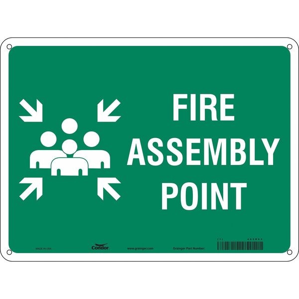 Safety Sign, Horizontal Rectangle, Number of Printed Sides 1, English, Sign Legend Fire Assembly Point, Sign Legend Background Color Green, Sign Legend Style Symbol and Text
