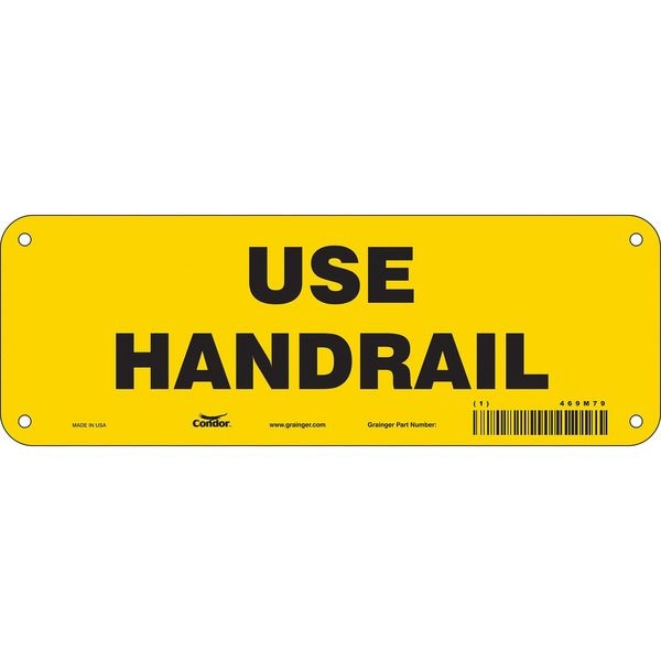 Safety Sign, Vertical Rectangle, Number of Printed Sides 1, English, Sign Format Other Format, Sign Legend Use Handrail, Sign Legend Background Color Yellow, Sign Legend Style Text