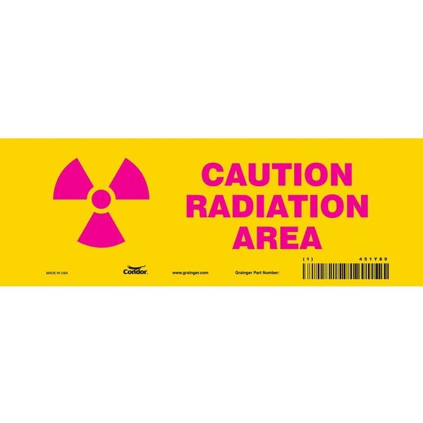 Safety Sign, Vertical Rectangle, Number of Printed Sides 1, English, Sign Format Other Format, Sign Legend Caution Radiation Area, Sign Legend Background Color Yellow, Sign Legend Style Symbol and Text
