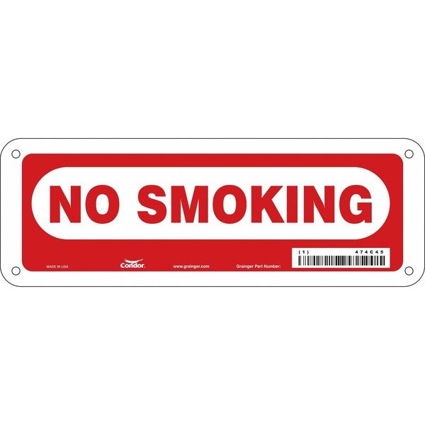 Safety Sign, Vertical Rectangle, Number of Printed Sides 1, English, Sign Format Other Format, Sign Legend No Smoking, Sign Legend Background Color Red, White, Sign Legend Style Text
