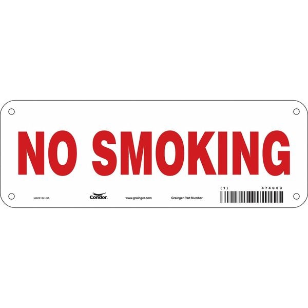 Safety Sign, Vertical Rectangle, Number of Printed Sides 1, English, Sign Format Other Format, Sign Legend No Smoking, Sign Legend Background Color White, Sign Legend Style Text
