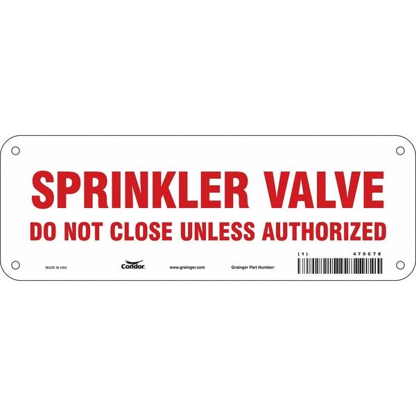 Safety Sign, Vertical Rectangle, Number of Printed Sides 1, English, Sign Format Other Format, Sign Legend Sprinkler Valve Do Not Close Unless Authorized, Sign Legend Background Color White, Sign Legend Style Text