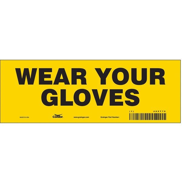 Safety Sign, Vertical Rectangle, Number of Printed Sides 1, English, Sign Format Other Format, Sign Legend Wear Your Gloves, Sign Legend Background Color Yellow, Sign Legend Style Text