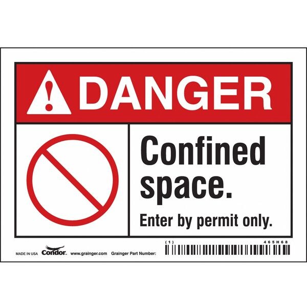 Safety Sign, Horizontal Rectangle, Number of Printed Sides 1, English, Sign Format ANSI/OSHA Format, Sign Legend Confined Space. Enter By Permit Only., Sign Legend Background Color White, Sign Legend Style Symbol and Text