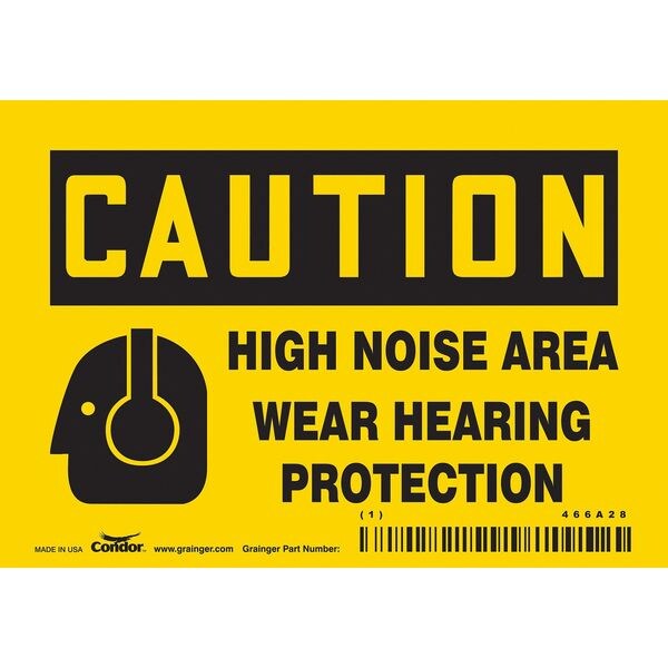 Safety Sign, Horizontal Rectangle, Number of Printed Sides 1, English, Sign Format Traditional OSHA, Sign Legend High Noise Area Wear Hearing Protection, Sign Legend Background Color Yellow, Sign Legend Style Symbol and Text