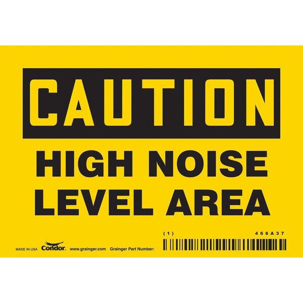 Safety Sign, Horizontal Rectangle, Number of Printed Sides 1, English, Sign Format Traditional OSHA, Sign Legend High Noise Level Area, Sign Legend Background Color Yellow, Sign Legend Style Text