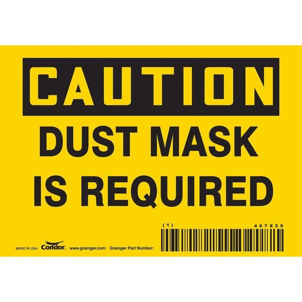 Safety Sign, Horizontal Rectangle, Number of Printed Sides 1, English, Sign Format Traditional OSHA, Sign Legend Dust Mask Is Required, Sign Legend Background Color Yellow, Sign Legend Style Text