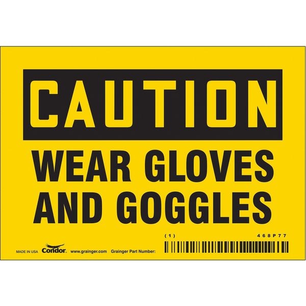 Safety Sign, Horizontal Rectangle, Number of Printed Sides 1, English, Sign Format Traditional OSHA, Sign Legend Wear Gloves And Goggles, Sign Legend Background Color Yellow, Sign Legend Style Text