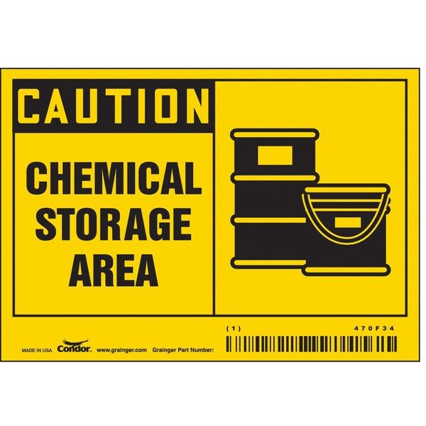 Safety Sign, Horizontal Rectangle, Number of Printed Sides 1, English, Sign Format Traditional OSHA, Sign Legend Chemical Storage Area, Sign Legend Background Color Yellow, Sign Legend Style Symbol and Text
