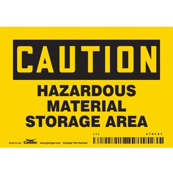 Safety Sign, Horizontal Rectangle, Number of Printed Sides 1, English, Sign Format Traditional OSHA, Sign Legend Hazardous Material Storage Area, Sign Legend Background Color Yellow, Sign Legend Style Text