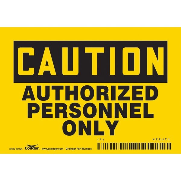 Safety Sign, Horizontal Rectangle, Number of Printed Sides 1, English, Sign Format Traditional OSHA, Sign Legend Authorized Personnel Only, Sign Legend Background Color Yellow, Sign Legend Style Text