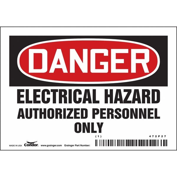 Safety Sign, Horizontal Rectangle, Number of Printed Sides 1, English, Sign Format Traditional OSHA, Sign Legend Electrical Hazard Authorized Personnel Only, Sign Legend Background Color White, Sign Legend Style Text
