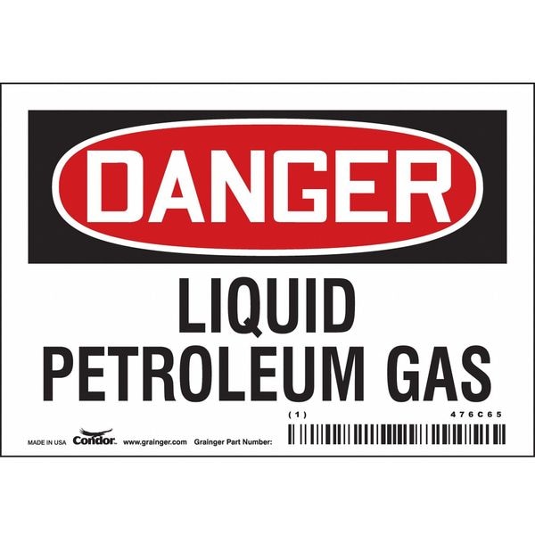 Safety Sign, Horizontal Rectangle, Number of Printed Sides 1, English, Sign Format Traditional OSHA, Sign Legend Liquid Petroleum Gas, Sign Legend Background Color White, Sign Legend Style Text