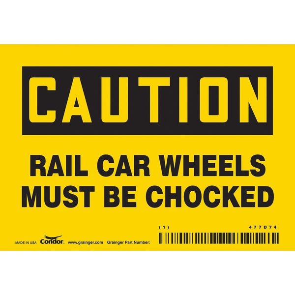 Safety Sign, Horizontal Rectangle, Number of Printed Sides 1, English, Sign Format Traditional OSHA, Sign Legend Rail Car Wheels Must Be Chocked, Sign Legend Background Color Yellow, Sign Legend Style Text