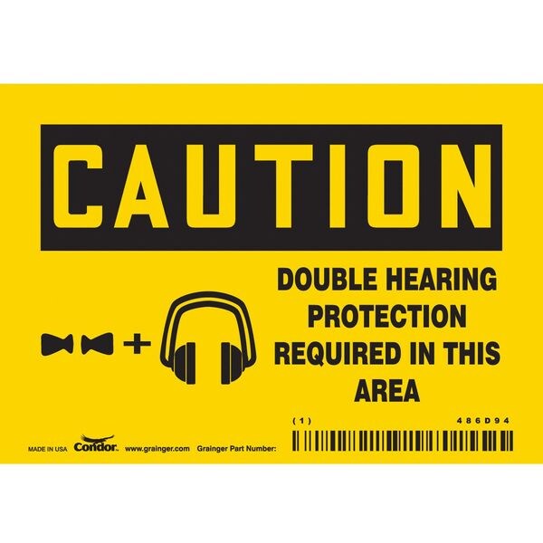 Safety Sign, Horizontal Rectangle, Number of Printed Sides 1, English, Sign Format Traditional OSHA, Sign Legend Double Hearing Protection Required In This Area, Sign Legend Background Color Yellow, Sign Legend Style Symbol and Text