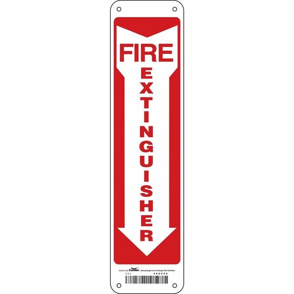 Safety Sign, Horizontal Rectangle, Number of Printed Sides 1, English, Sign Format Other Format, Sign Legend Fire Extinguisher, Sign Legend Background Color Red, White, Sign Legend Style Symbol and Text