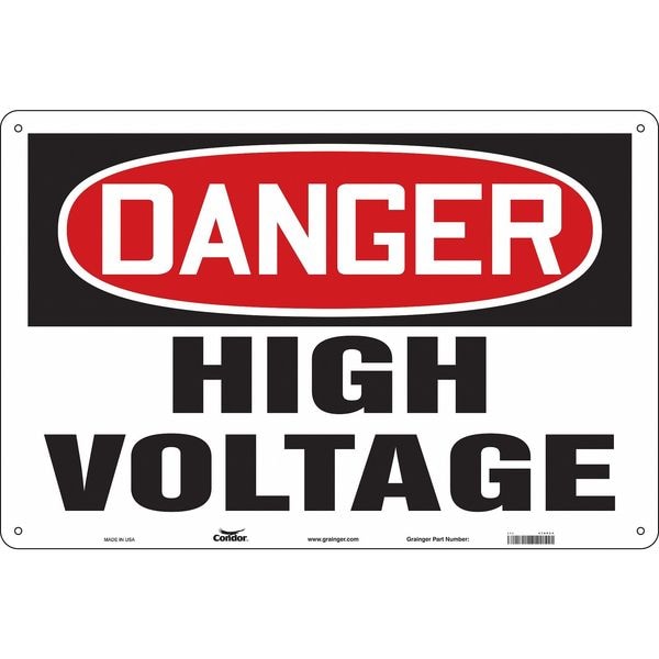 Safety Sign, Horizontal Rectangle, Number of Printed Sides 1, English, Sign Format Traditional OSHA, Sign Legend High Voltage, Sign Legend Background Color White, Sign Legend Style Text