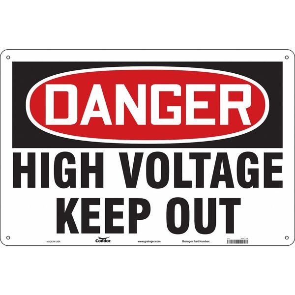 Safety Sign, Horizontal Rectangle, Number of Printed Sides 1, English, Sign Format Traditional OSHA, Sign Legend High Voltage Keep Out, Sign Legend Background Color White, Sign Legend Style Text