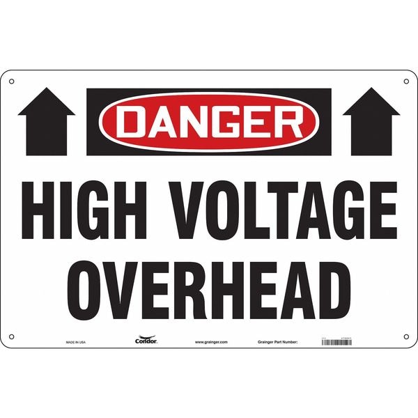 Safety Sign, Horizontal Rectangle, Number of Printed Sides 1, English, Sign Format Traditional OSHA, Sign Legend High Voltage Overhead, Sign Legend Background Color White, Sign Legend Style Symbol and Text