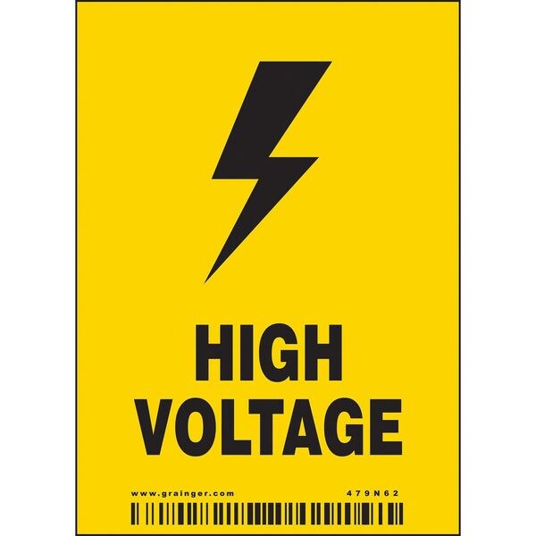 Safety Sign, Vertical Rectangle, Number of Printed Sides 1, English, Sign Format Other Format, Sign Legend High Voltage, Sign Legend Background Color Yellow, Sign Legend Style Symbol and Text, Package Quantity 25