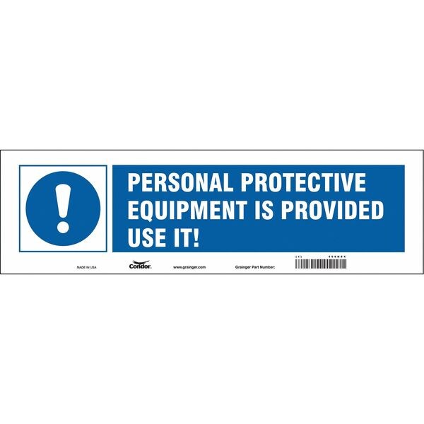 Safety Sign, Vertical Rectangle, Number of Printed Sides 1, English, Sign Format Other Format, Sign Legend Personal Protective Equipment Is Provided Use It!, Sign Legend Background Color Blue, Sign Legend Style Symbol and Text