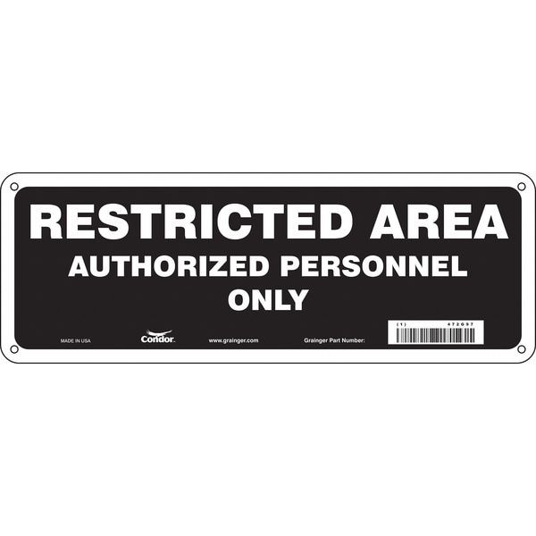 Safety Sign, Vertical Rectangle, Number of Printed Sides 1, English, Sign Format Other Format, Sign Legend Restricted Area Authorized Personnel Only, Sign Legend Background Color Black, Sign Legend Style Text