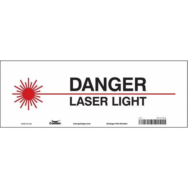 Safety Sign, Vertical Rectangle, Number of Printed Sides 1, English, Sign Format Other Format, Sign Legend Danger Laser Light, Sign Legend Background Color White, Sign Legend Style Symbol and Text