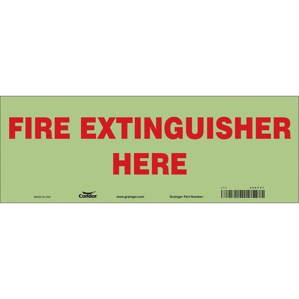 Safety Sign, Vertical Rectangle, Number of Printed Sides 1, English, Sign Format Other Format, Sign Legend Fire Extinguisher Here, Sign Legend Background Color White, Sign Legend Style Text